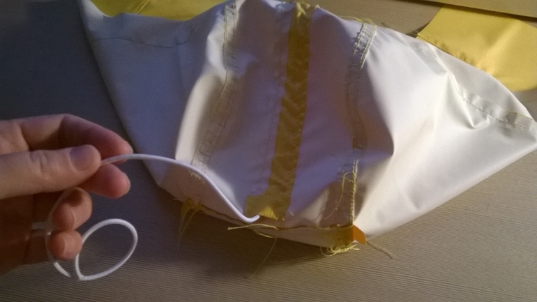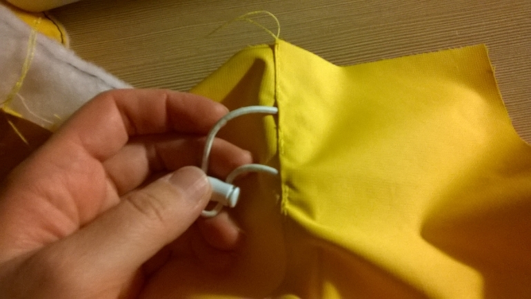 далее вставляю люверсы, резинку в стопор, концы резинки фиксирую с края детали капа