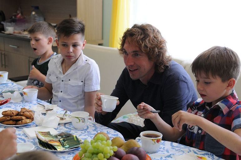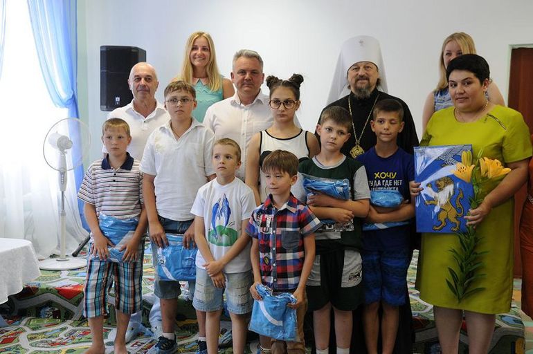 слева направо: Тихон, Татьяна Ивановна - зав. отд. детской гематологии и онкологии Белгородской ОДКБ (сын очень обрадовался встрече с ней), Женя - руководитель БРОО "Святое Белогорье против детского рака", Белгородский митрополит Иоанн, мэр Белгорода, банкир Николай Незнамов, Маша - член Белгородской сборной.
