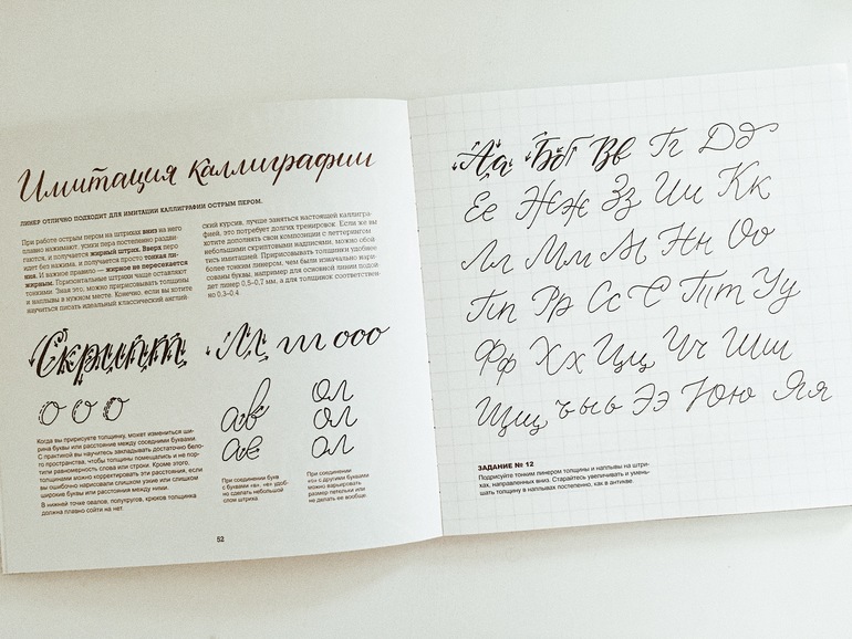 Но потом я узнала, что не все так просто. Оказалось, что мне, левше, ещё и перо надо особенное искать, да и не каждый может меня такую, леворукую, научить. Решила искать другие варианты. Увидела, как люди имитируют каллиграфию, прописывая каждую букву обычной ручкой, карандашом или фломастером. Стала искать уроки на YouTube. Но все было как-то неорганизованно, неупорядоченно и совершенно без теории. А я так ее могу.
