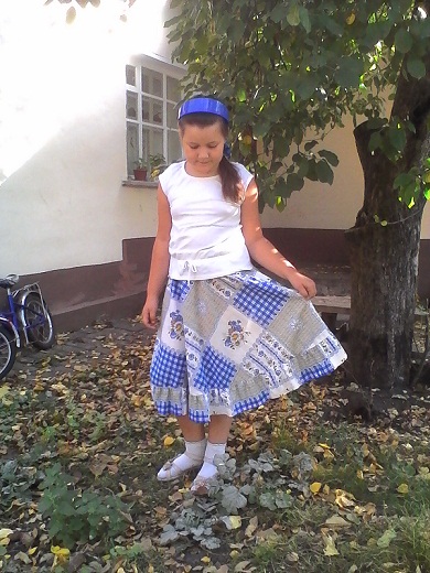 Вот такая юбчонка сшилась доче к празднику, вторая, более тёплая, уже раскроенная, ждёт своего часа.