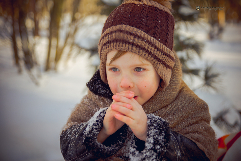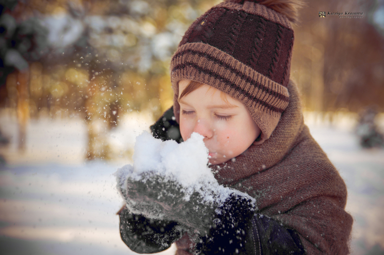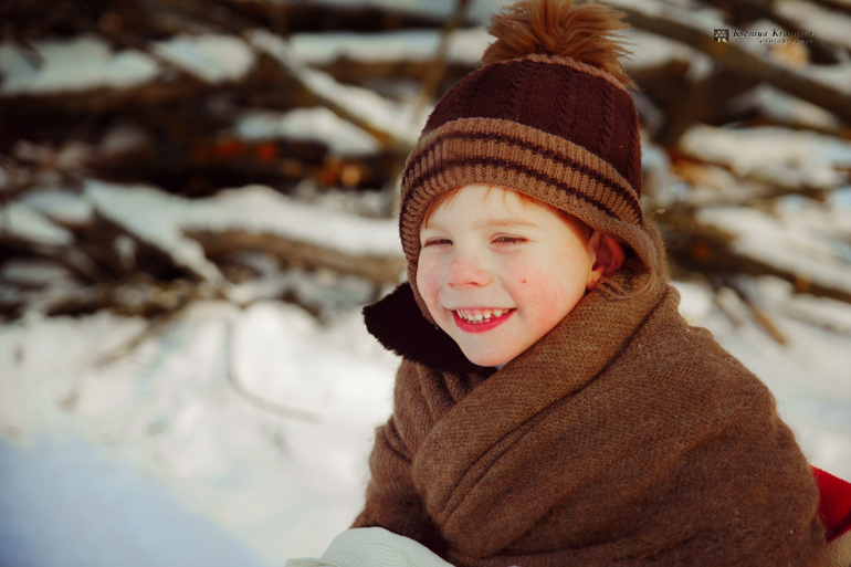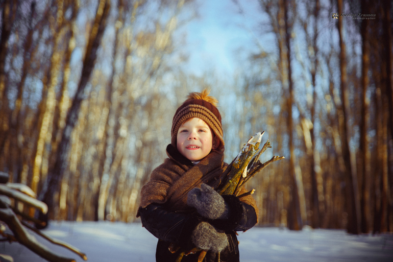 Вчера, 18 января, у нас была изумительная погода - светило яркое солнышко, блестел и рассыпался снег, было не по-зимнему тепло и очень сказочно. Я эту погоду сторожила неделю и именно вчера решила не водить младшего ребенка в садик, а воплотить с ним идею, которая долго у меня вертелась в голове. Жалко у нас не было ушанки, жалко санки не из дерева, но мне показалось это мелочью. Сынок был отличным молодцом и так легко выполнял мои просьбы, что я была крайне удивлена и съемки прошли на одном дыхании.