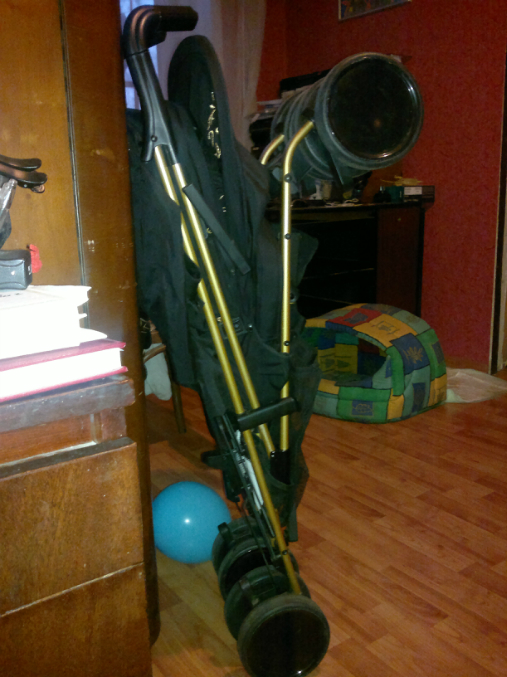 - в сложенном виде не пачкает колесами,так же может стоять самостоятельно