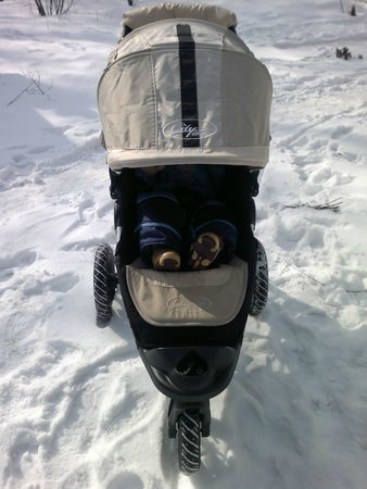 - зимой в конверте и зимнем комбезе годовалому стало тесно.