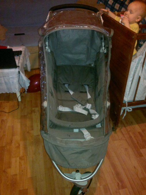 - из-за большой широты коляски регулировка спинки на молниях и внутренних липучках,меня до матершинства раздрожало