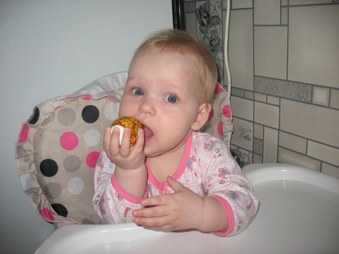Это было на Пасху. "Мое первое яйцо!!!!!"