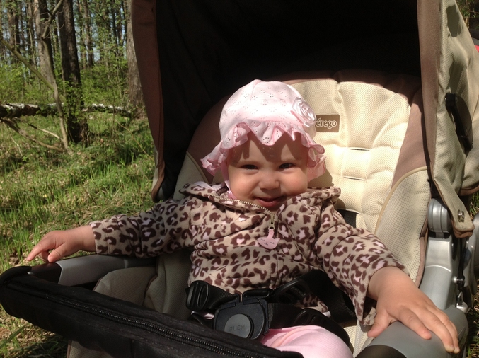 Из нового-начали уверенно ходить за одну руку и вдоль дивана, сама ходить не хочет категорически, боится,придется покупать ходунки каталку, на улице ходила с коляской с огромным удовольствием, бежала чуть ли не вперед коляяски и смеялась.