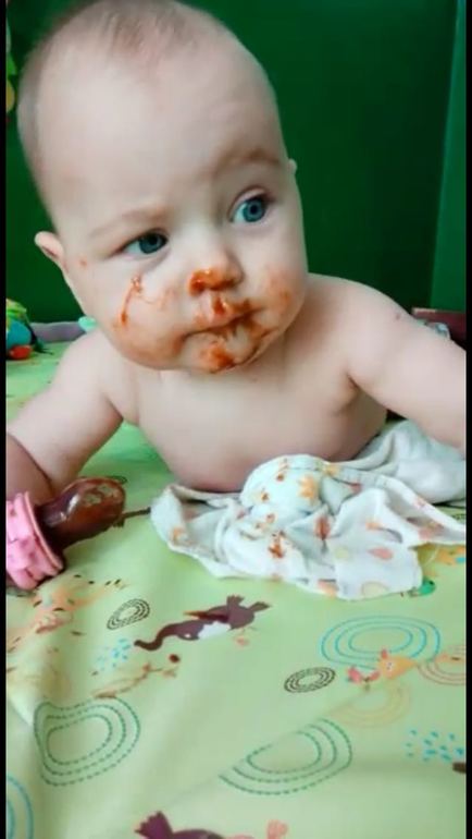 Мимика кстати да, сестра из видео наскринила. Невозможно его сфотографировать за едой и не размазать кадр