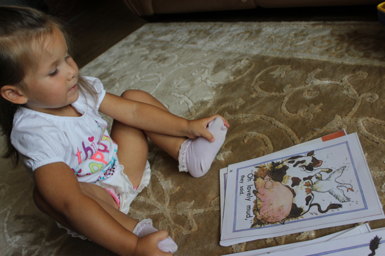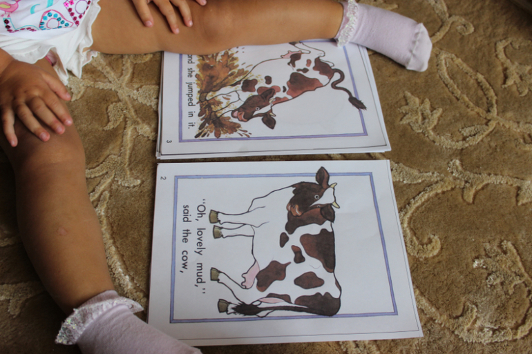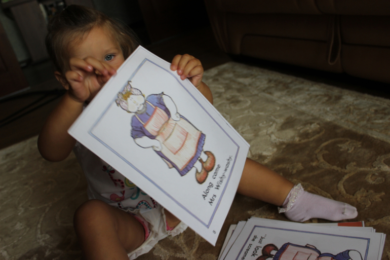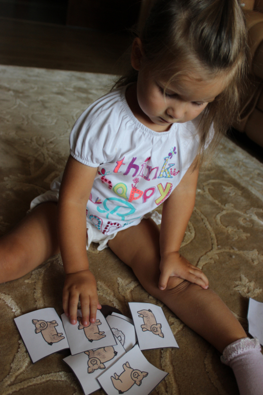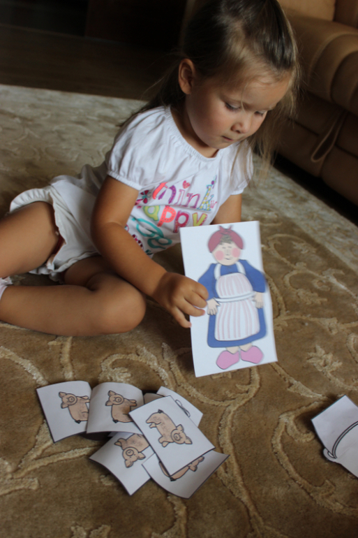 Потом найти животных и их домики. Благо их три всего. Да и на карточках нарисовано, кто, где живет. Не сложно догадаться. При этом я не говорю с ней на русском все на английском!!