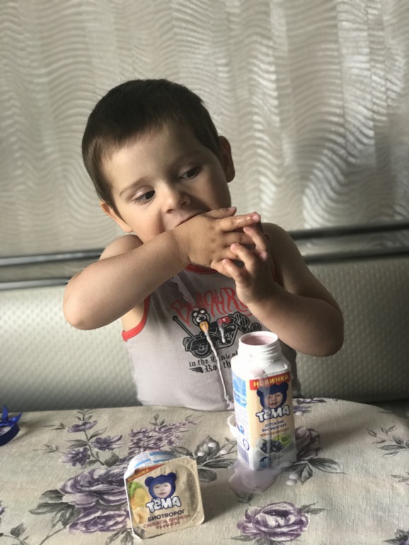 Для меня Тёма спасение, вот опять привезли, когда мы приехали в Москву, делать прививки-в ясли собираемся))))) соответственно молочки нет, а Тёма тут как тут, наше спасение!👌