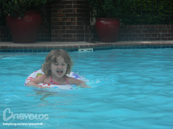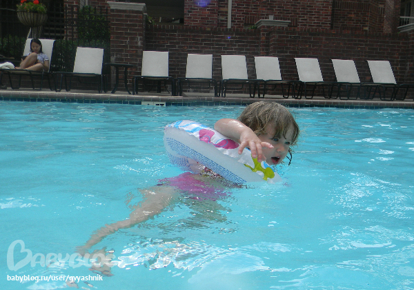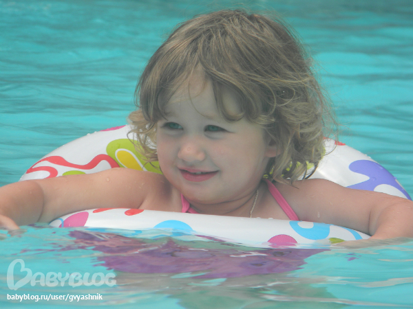 Маша_фотоКупила Машке самый простецкий плавательный круг - и так ей понравилось с ним купаться! Научилась в нем сама плыть туда, куда ей нужно. Теперь вытащить ее не могу.