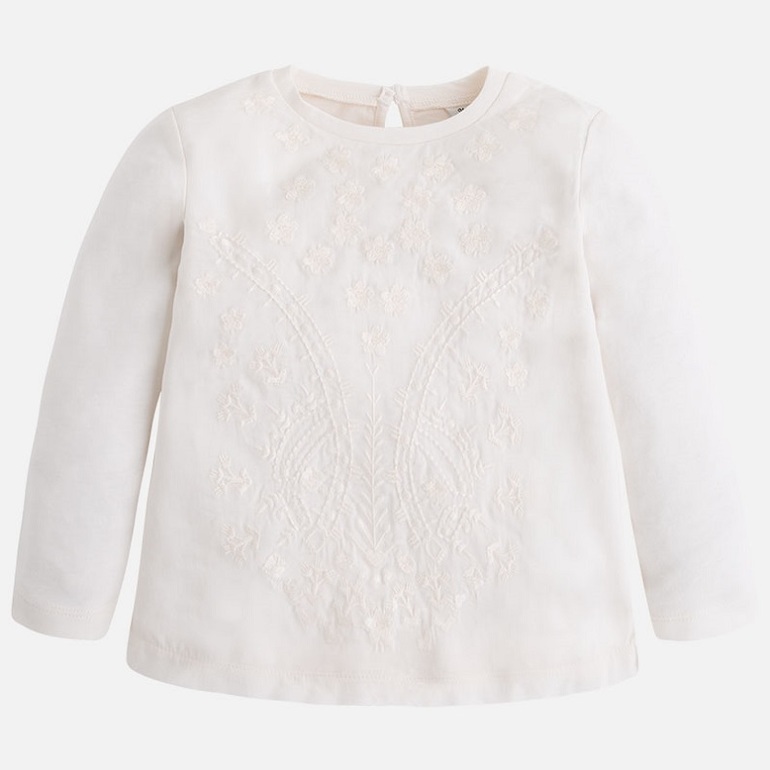 4.Очень нежная молочная футболка с длинным рукавом, впереди двуслойная-кружево