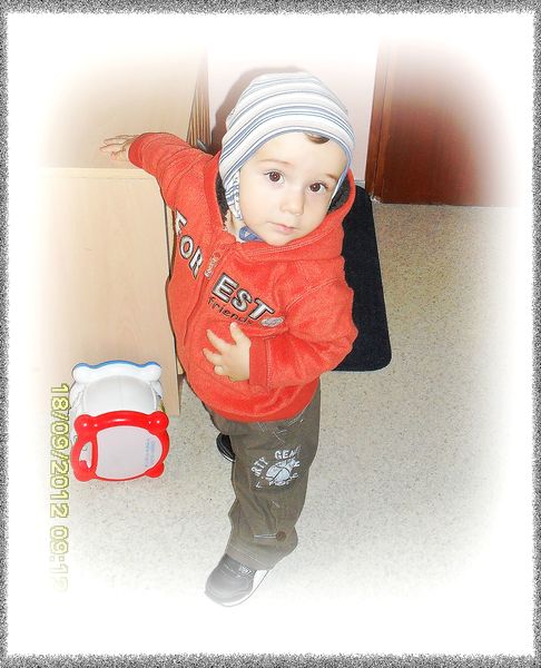 ,ещё месяц и первое Годовасие,время пролетело,не заметила,ну на счёт новых умелок,что мы умеет,да впринципе ничего такого,залазим,слазим,ползаем,ходим,но страх нас не покидает,уже пошёл,потом раз упал и пару недель даже не пытался,сейчас опять пробует,но уверенно не ходит,на своём марсиянском болтает,мама,баба-(это папа по турецки),вава,ава,ауть-(это машина по немецки)ругается,когда я его ругаю и пальчиком грожу,он тоже пальчиком грозит,только за место ай-ай-ай,говорит а-а-а)))В общем бандит растёт,слово нельзя для нас не существует,если только скажу,он будит до посинения своё делать,буду ругать,ещё хуже,будит с соплями,но делать своё,настырный до ужаса