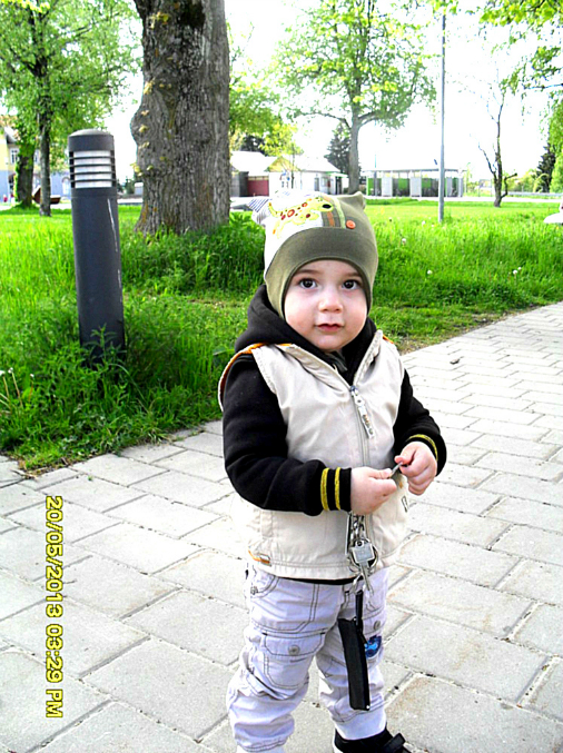 У него вообще щёк нет,просто шапка затянута видать,а на счёт капюшонки,так это кофта от костюма спортивного,брали в русском магазине)))