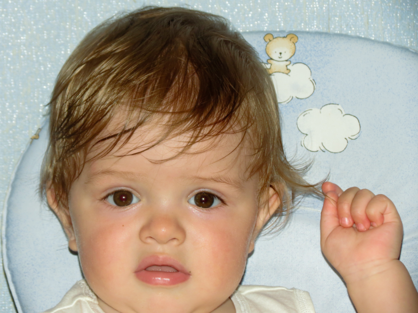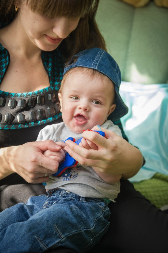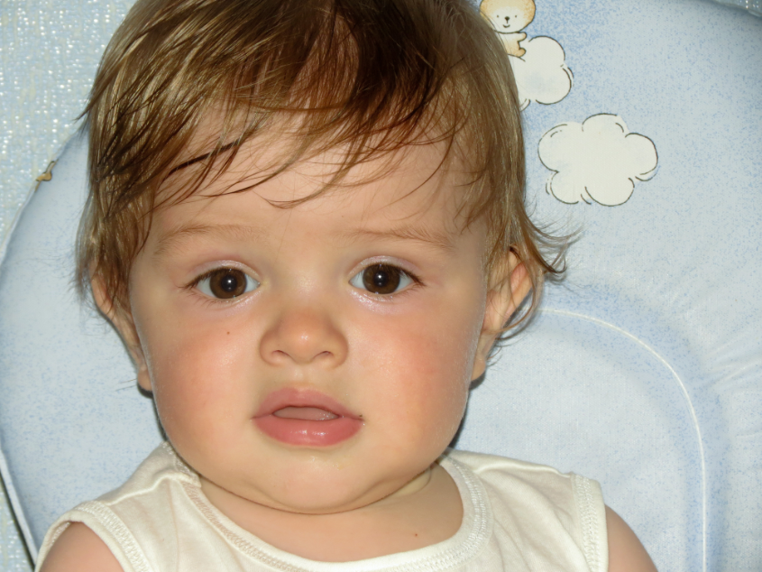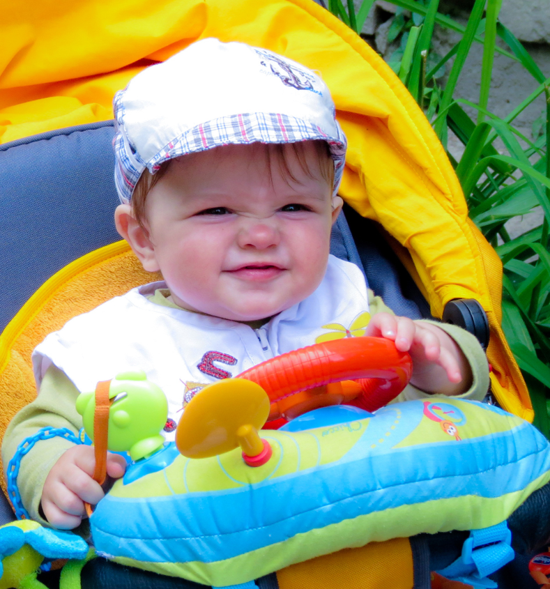 И так, нам уже 10 месяцев. Родился мой сынишка Владиславчик на праздник Спаса, 19 августа, о 16:40, вес - 3250, рост - 52 см. В 9 месяцев весили 9350, рост - 75,5. У нас уже 8 зубов)))любим кусаться и очень больно щипаться. Ходим только за ручку, правда сегодня сами сделали два шага))А еще уже стоим без опоры несколько секунд))) Любим рекламу, от телевизора не оторвать)))музыку любим - пританцовываем)))Собираем с пола все что только можно, на улице любим собирать камушки)очень любим гулять, но только не в коляске а за ручку топать)нравиться играть с детишками. Умеем цокать, бить по столу, морщить носик, листать журналы, моргать, говорим "ням-ням", "ба-ба", "та- та", ""ма-ма", иногда получаеться сказать "дай", если захочет может показать па-па, но это очень редко.Хлопать в ладошки -отказываемся и все. Кушаем хорошо (взрослую еду) , и практически всегда после еды кричим, потому что кажется что мало) Так что, мой Владик - упертый, весел, активный, немножко ленивый, но мой самый любимый.