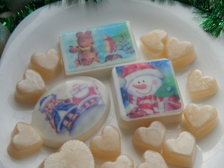 На днях сделали с Лизой мыло в подарок родным, заодно Лиза и подружкам своим сделала.
