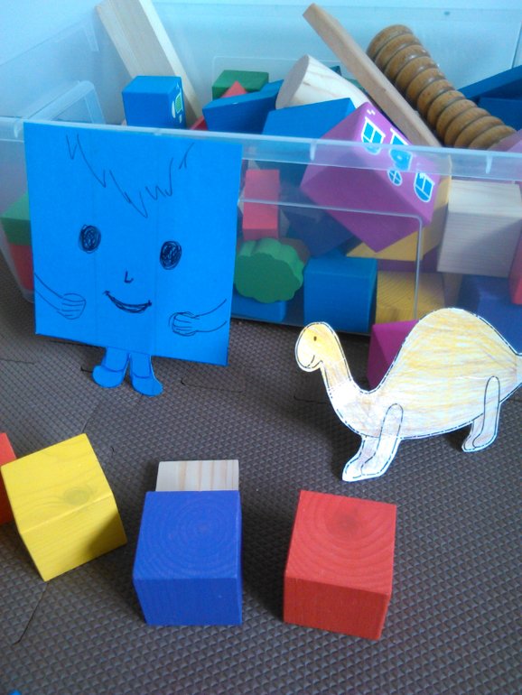 Сегодня к нам в гости пришел КВАДРАТ. Вместе мы нашли квадратные фигуры. Построили из кубиков башню. Покатали машинки по квадратной дороге. Провели КВАДРАТ И ДИНО по мосту через реку. Играли в прятки, прятали ДИНО за квадратиками. Играли в лото: раскладывали кубики на бумаге по нужным цветам. Вечером положили всех спать на квадратные подушки и накрыли квадратными одеялами.