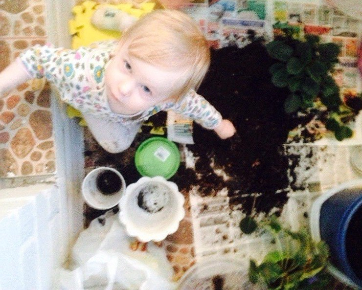 А вот пересадка цветов вылилась в большую постирушку Сони, ее одежды и кухни с балконом. Уж помогла так помогла.