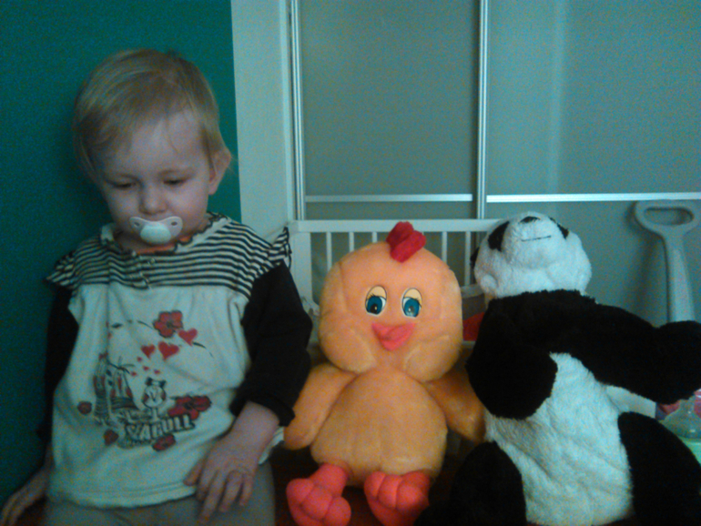 А неделю назад навещали мою бабушку в деревне. Всю живность пересмотрели, все перетрогали. Соню даже кот чуть не поцарапал. Она ему какую-то игрушку упорно в нос тыкала. Посмотрели, как картошку садят.