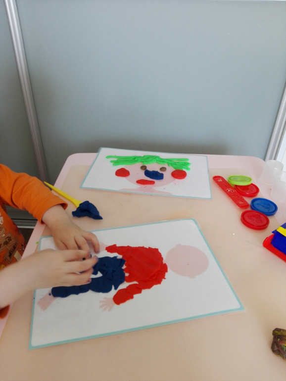 Про лепку и рисование тоже не забываем. Начали знакомится с органами чувств, эта лепка как раз из занятия. Позже опишу подробнее.