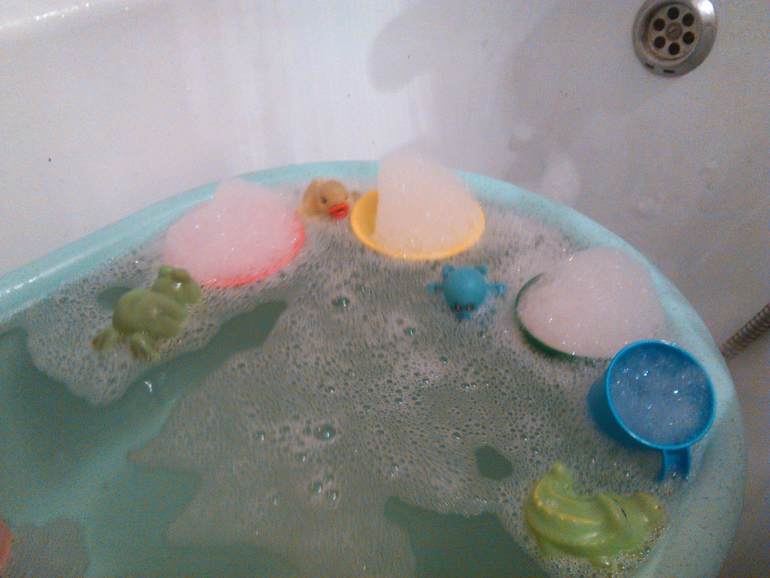 Игры в ванной. Соня меньше часа в ванне не проводит. Очень любит воду. Мы там и пузыри пускаем и вот так булькаем через трубочки. Еще аквариум делаем в банке с папиными рыбками для рыбалки.