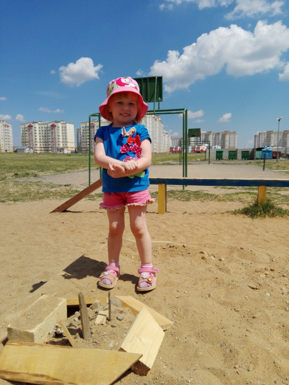 С не знакомыми детьми сложнее, но тоже интересно. Соня не хочет играть с ровесниками, примыкает к детям постарше. Я только наблюдаю со стороны и решаю конфликты если надо. А конфликты случаются. Соня может забрать игрушку, даже если это не ее, даже у ребенка постарше. Некоторые дети теряются от такой наглости, приходится мне вмешиваться. Некоторые не отдают и начинается почти драка. Я и не думала, что Соня может так драться! Приходится разнимать, объяснять, что нельзя забирать чужое. Соня старается успеть за старшими, уже все колени посбивала, так носится. А дел то у них сколько! То камни какие-то носят, то цветок найдут и сажают.