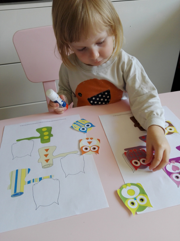 Каждому совенку свое дерево. Тут и цвета и фигуры.