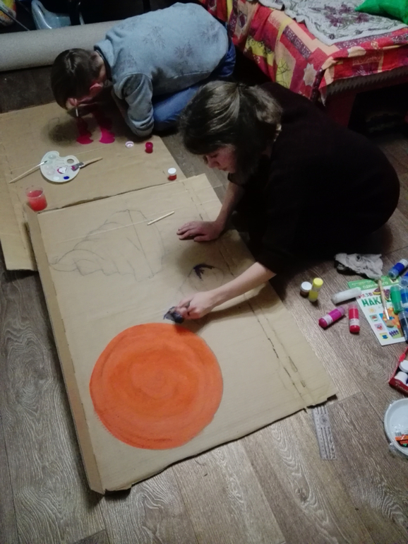 декорации и правда отличные получились, всех заставила помогать