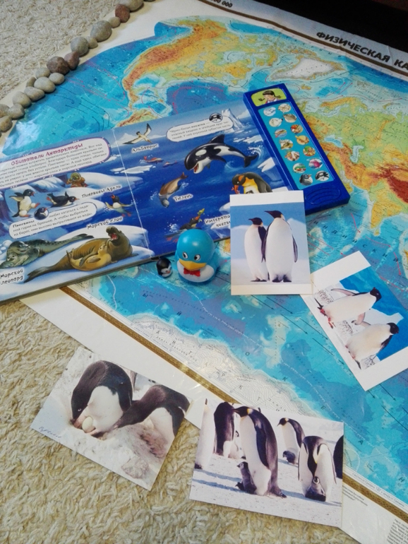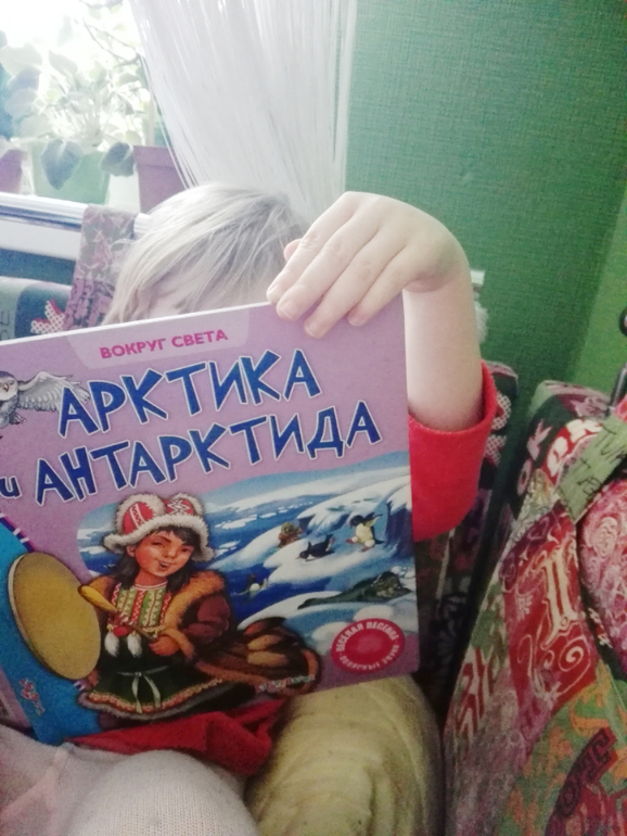 Книг про Антарктиду у нас мало. Кроме основной книги, нашлась книжка про пингвиненка, и в книге "Улитка и кит" почитали немного.