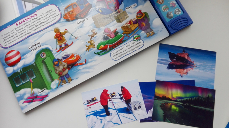 И еще одна тема: айсберги, ледоколы, северное сияние, полярные станции. В нашей книге есть разворот на эту тему, плюс я пару фото добавила.