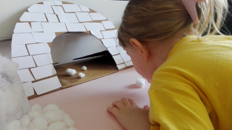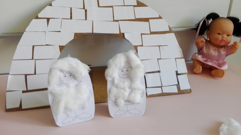 Эскимосы из картона. Чтобы не замерзли, утеплили их ватой.