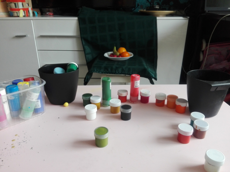 Затем подбирали краски нужных цветов, ещё с полчаса смешивали их до нужных оттенков.