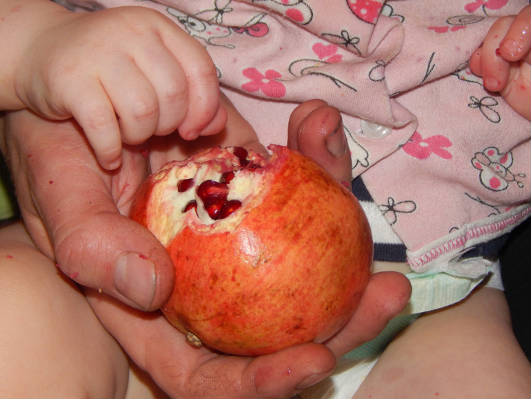 ПАПА наэлектризовал мячиком Соне волосы и вместе с ней поел гранат.