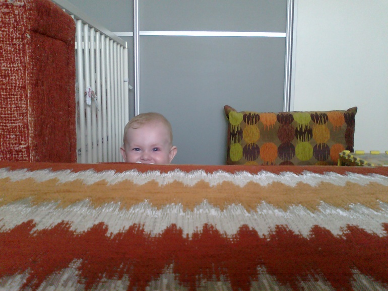Говорят, у малышей месяц за год идет. Я вижу большую разницу между нашим 7 и 8 месяцем. Главных событий было 2: мы научились ползать и у нас вылезло 2 зуба. Ползать в 7 Соня не умела совсем, передвигалась переворачиваясь со спины на живот и крутясь на животе в разные стороны. И вдруг взяла и поползла. Мы, конечно, обрадовались, но перестроиться сразу не сумели и уже на следующий день Соня грымнулась с дивана на пол, папа не ожидал от ребенка такой прыти и вовремя споймать не успел. Обошлось без последствий. Ползающий малыш напоминает страуса , доползет до преграды и смотрит , вытянув шею, тут приходит на ум фраза из песни: "эти глаза напротив...".