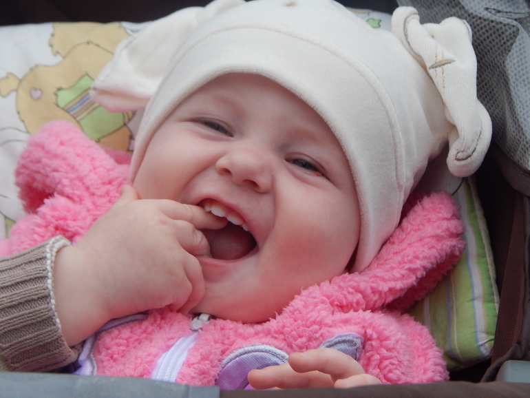Зубы. В этом месяце нас всех замучили Сонины зубы.Во-первых, она стала очень кусачей девочкой, просто спасу нет, кусает всех и все, видно ее эти зубы замучили еще больше. Ночью очень плохо спит, приходится забирать к себе, что бы не вставать по 20 раз. Вчера даже затемпературили немножко, но к вечеру прошло.