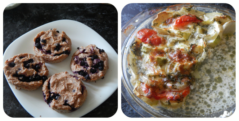 Основная еда на сегодня была приготовлена вчера и можно было бы вообще не готовить. Но, сначала, мне захотелось запечь овощи, потом увидела пачку творога, а потом решила, что можно поготовить вместе с Соней. Итак, у нас запечёные овощи для мамы и маленькие запеканочки Соне.