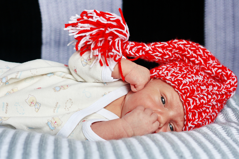 кроху на колени животом вниз и нежно покачайте.·Включите