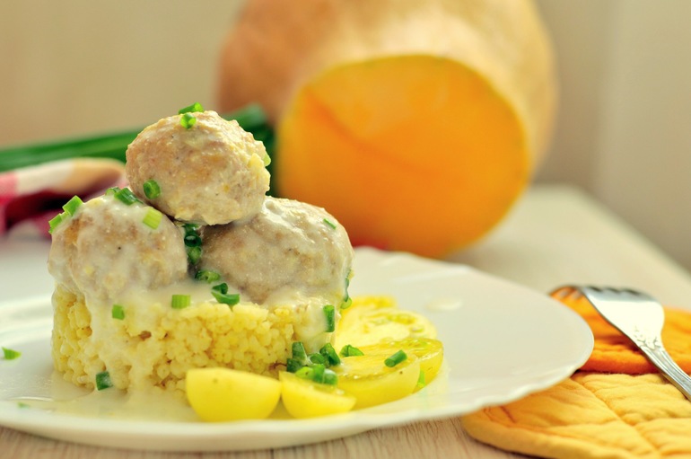 Это мясные тефтельки с тыквой и пшенкой в нежном сметанном соусе. ♥️