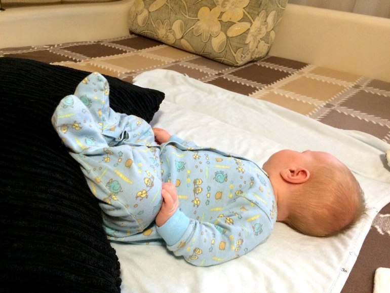 кстати иногда, когда Мишель не может покакать, пардон)))))))мы поднимаем ему ноги кверху, чтобы помочь.... и бывает, что он сразу засыпает в таком положении, ногами к верху, приходится подушечку подкладывать, чтобы не будить)))))