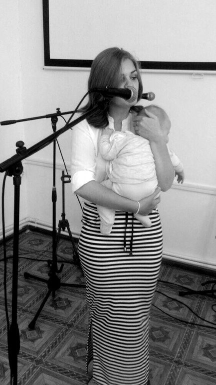 С Мишей в слинге и Егором за ручку езжу на репетиции, а в воскресенье на служении снова пою) опять таки с Мишаней же в слинге)))