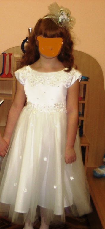 Продаю в хорошем состоянии красивое платье р:6(от 6 до 8 лет),одели 2 раза на выпускной и Новый год.Подойдёт как на худеньких так и пухляшек ,сзади завязывается на бант.Длина от плеча 80 см,по груди 33 см. м.войковская