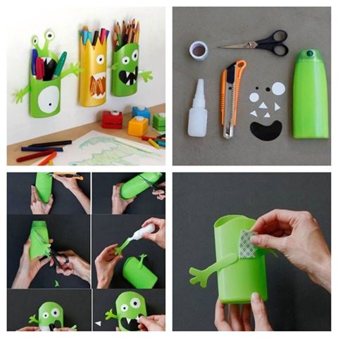 Как организовать креативное пространство для детей. Вот такие прикольные подставки можно сделать для детской комнаты в виде монстриков! Весело и креативно. Для этого нужен лишь пустой тюбик от шампуня, клей, ножницы, бумага и скотч.#советыhelperагента #идеидляребенка#подбордомашнегоперсонала #нужнаняня #идеидлядома#детскаякомната #ямама #маминблог #мамаблог