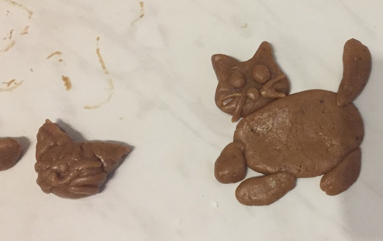 Быстро поднятое не считается упавшим. В мгновение ока собираю все с пола. Попутно машинально сую в рот отвалившиеся кусочки, краем сознания отмечая, что какие-то они очень ровные. И...понимаю, что напихала в рот кошачьего корма!