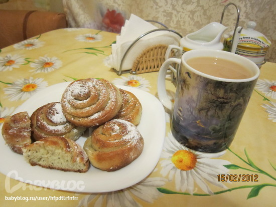 Тесто: Дрожжи 1 ч. л растворить в молоке 1 ст. + вода 0,5 ст.+0,5ч.л соли+ сахар 1 ст. л. Когда дрожжи запенятся добавить 2 яйца , всыпать 0,5 ст.сахара, 1/2 пачки маргарина растопить все перемешать. Всыпать 4 ст. муки, перемешать, добавить мак, влить немного масла раст. Поместить тесто в емкости, затем в тазик с теплой водой, по мере остывания подливать воду. Через 30 мин тесто осадить. Еще через 30 мин можно стряпать. Получилось два протвеня. время тратиться мало, булочки нежные и вкусные. Приятного аппетита!!!