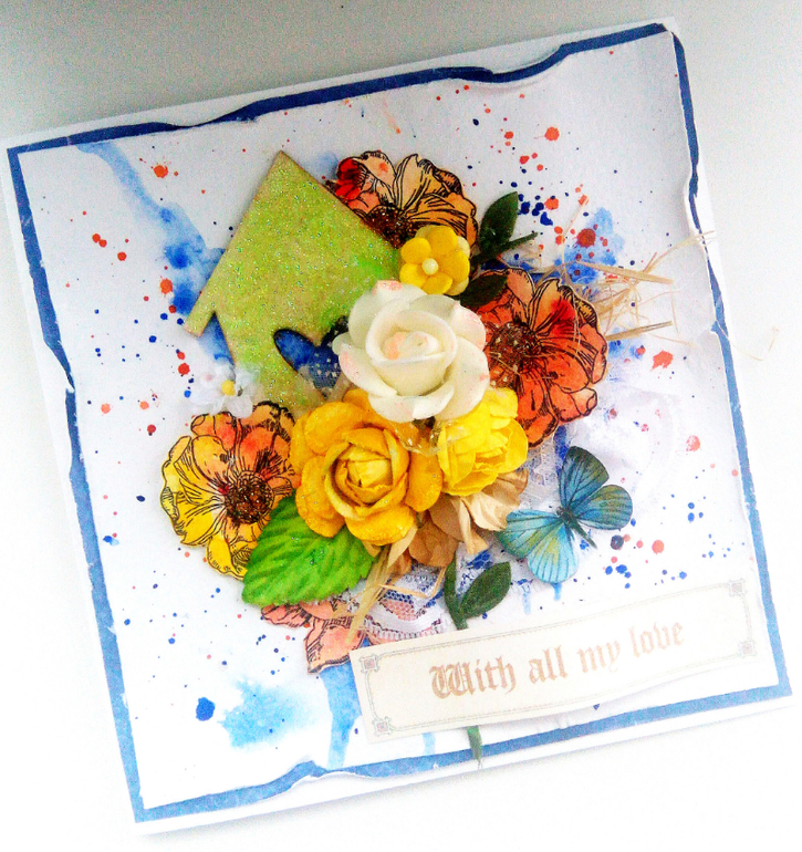 На этот раз цветочки делали совместно с дитенышем. Я вырезала, Настя раскрашивала, я крючком давила, Настя клеила - вот такой конвеер).