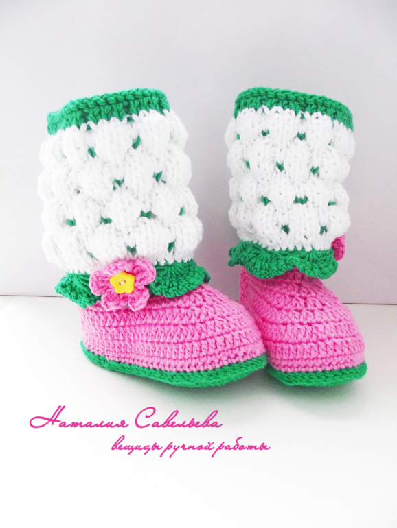 На этот раз покажу пинетки для барышни повзрослее) Размерчик для пинеток довольно-таки внушительный - 15 см)