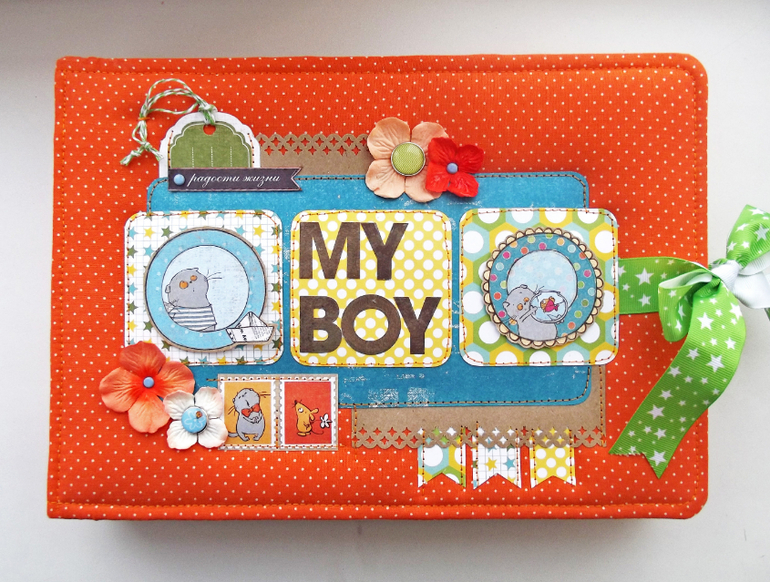 Всем привет! Хочу показать вам альбом, который сделала для одной замечательной девушки и её сынишки))) Размер альбома 20х23, вмещает 30 фото размером 10х15 и 9х13. В альбоме есть секретики, теги для записей и карточки, где мама запишет самые важные моменты первого года жизни малыша. Смотрим? Фото под катом будет много)