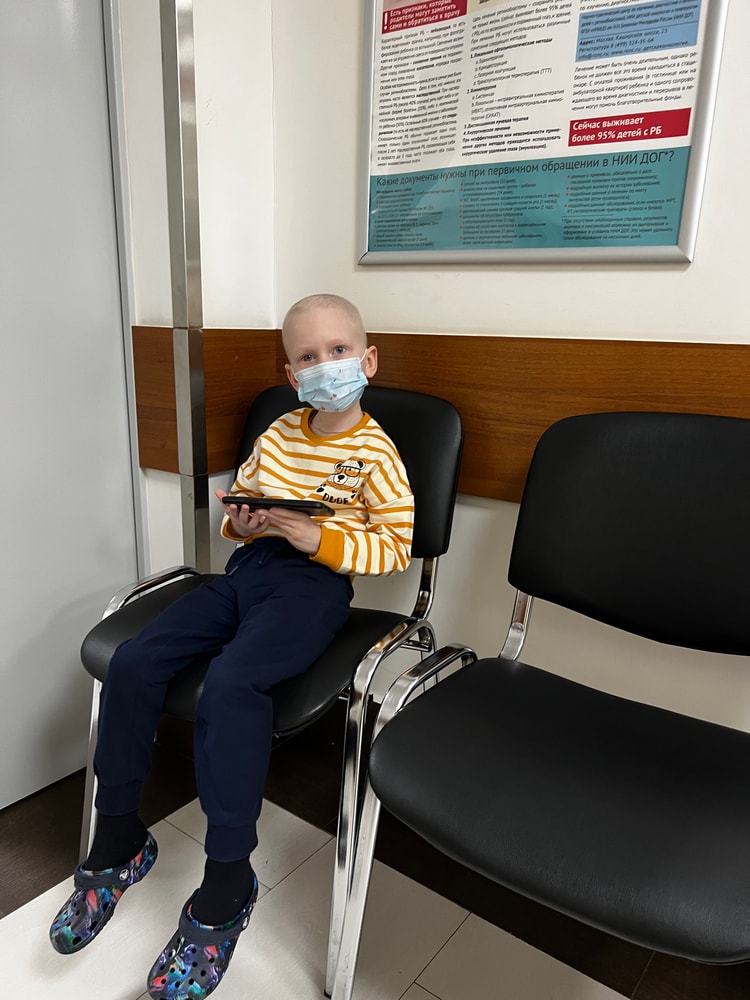 Сегодня должна была состояться наша шестая госпитализация в Блохина. Мы приехали с вещами, но не были уверены, что нас положат. У Юры гематома в глазу после прошлой химии, она немного уменьшилась, но не до такой степени, чтобы можно было продолжать уколы ИВХТ.