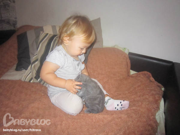 Я тоже вроде равнодушна, да у меня никого и не было никогда, но ваш котенок прелесть, даже самой захотелось, у меня Матвей тоже очень любит котиков, к бабушке приходим, так он от него не отходит))) но тот злой, я его сама побаиваюсь и за Мотю боюсь. А ваш лапочка, лишь бы с Никой подружился мирно)))