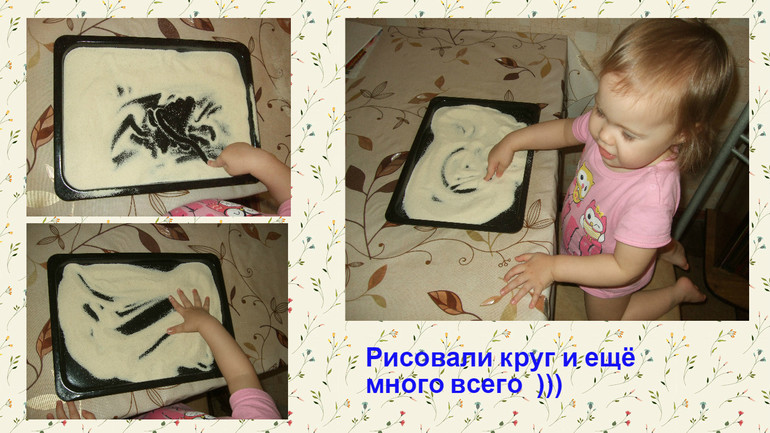 5. Форма. Круг. Рисовали круги пальчиком на манке. Для нас такое занятие было в новинку. Вызвало интерес.