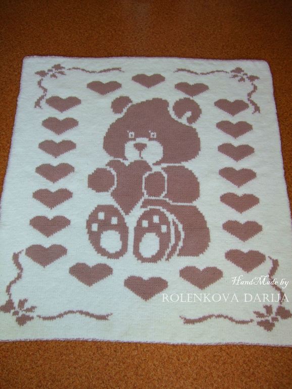 ХОББИДоброго времени суток всем!!! Оцените мою новую работу. Детский плед, связанный спицами в технике двойного жаккарда.